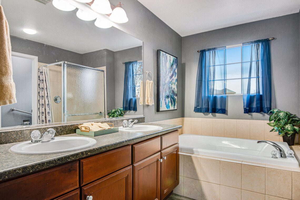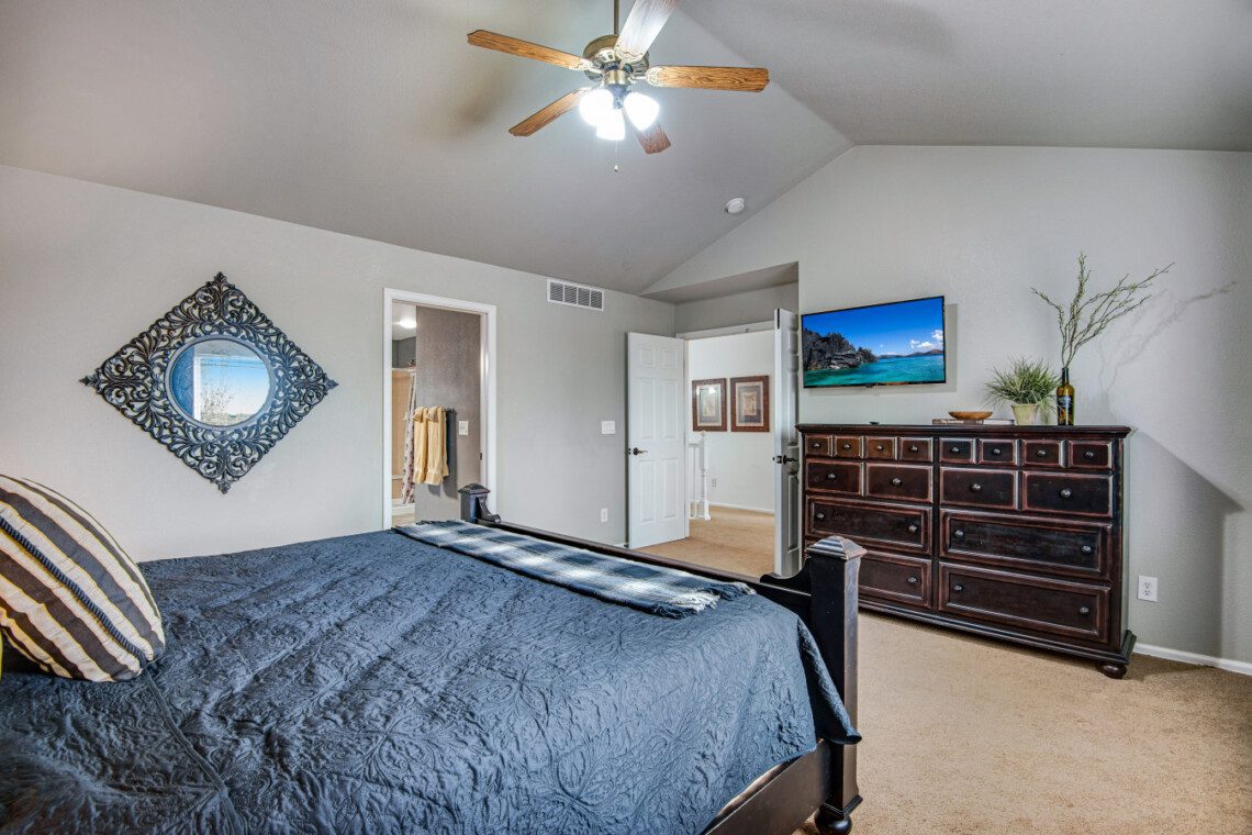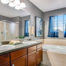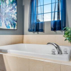 The large master bedroom with spacious ensuite including a jacuzzi tub and separate shower, along with private toilet and walk-in closet.